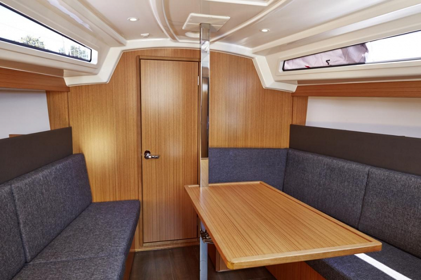 Sous le pont, on on découvre un volume semblable à un 37 pieds. Le salon type loft, est ouvert et lumineux, aucune porte ou cloison ne déjoue la vue. Même dans la version de base, avec de grandes couchettes dans la poupe et la proue, une petite table dans le salon, une petite cuisine pour concocter de bons petits plats et un cabinet de toilette facile à entretenir permettent de longues croisières tout confort.